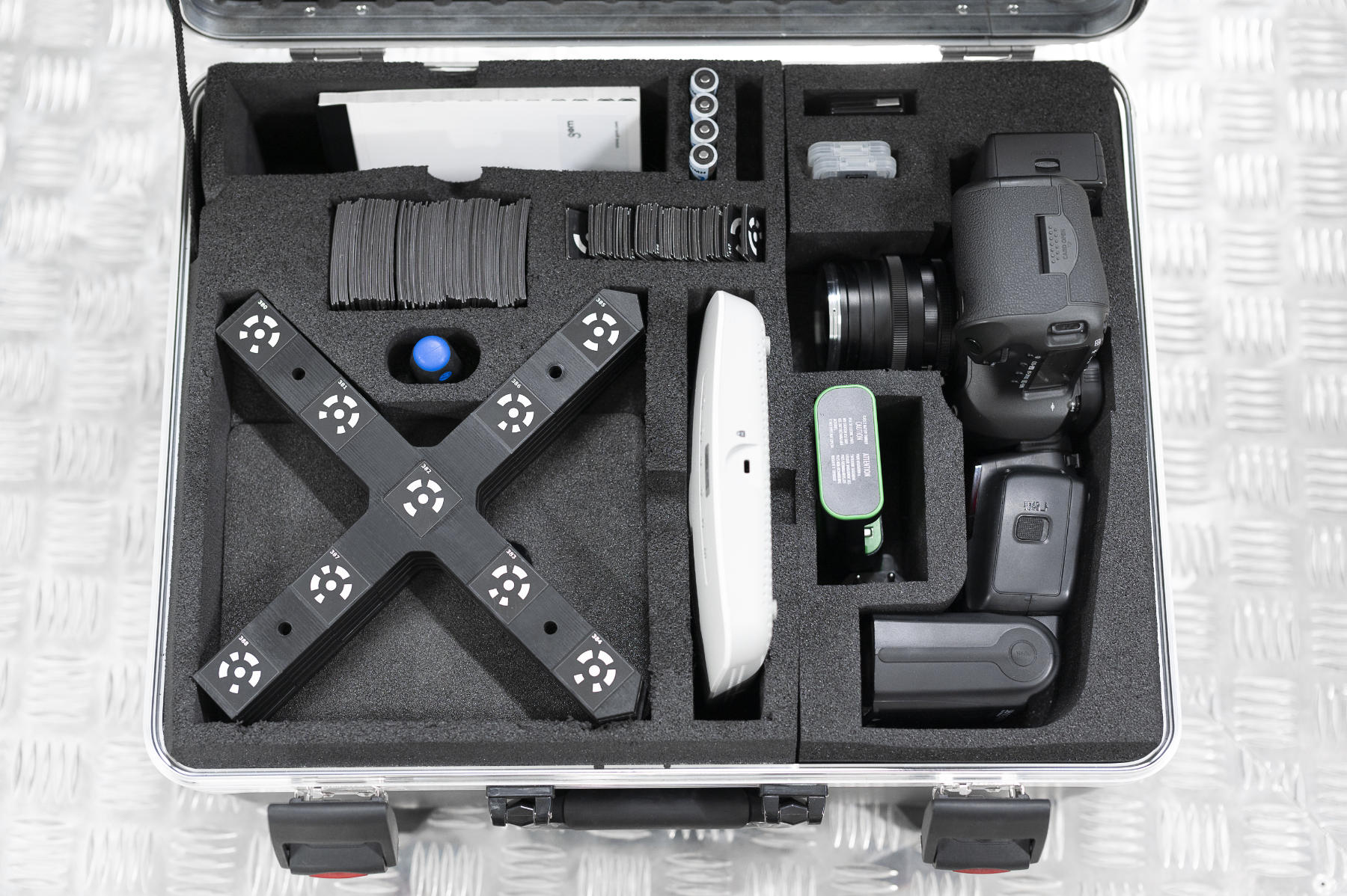 This system is often used as a supplement to 3D scanners to increase accuracy in large-volume measurements. The TRITOP 5204 is ideally suited for complex components such as car bodies, aircraft structures, casting molds, or machine components, and thanks to its mobility, it can be used directly on site. As a result, it delivers reliable measurement results even in demanding environments.