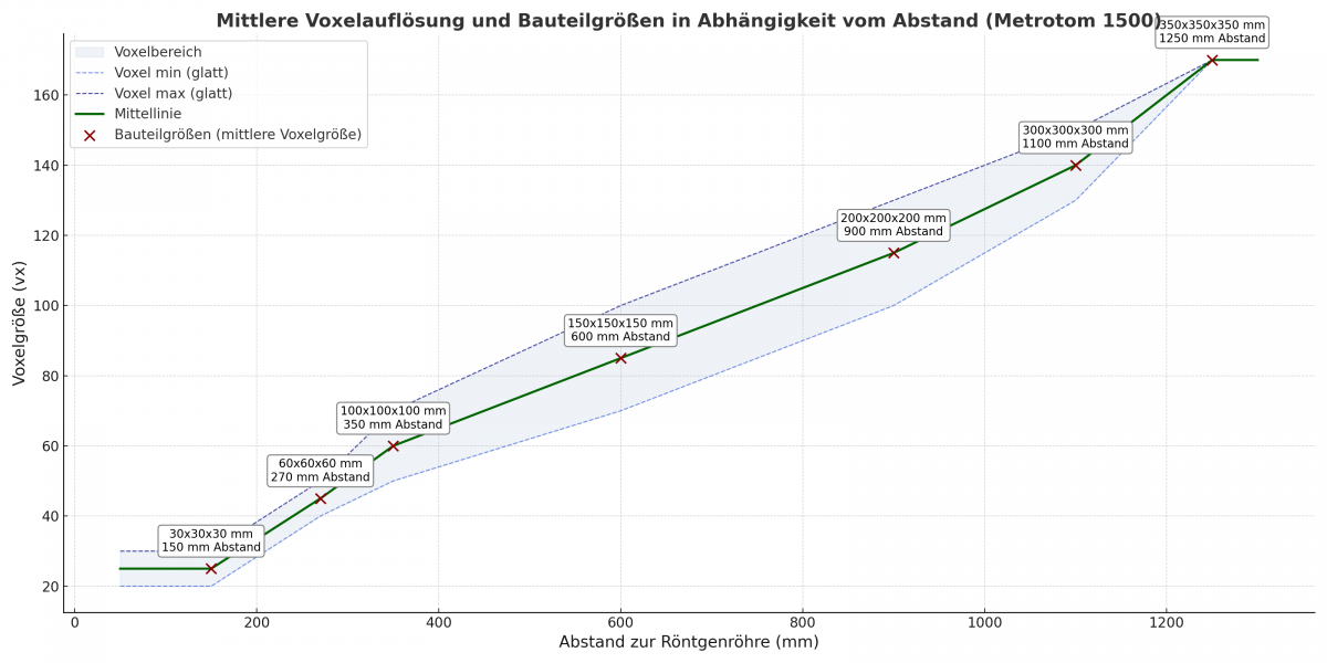 • Bauteilgröße und -komplexität: Besonders große oder komplex geformte Bauteile erfordern spezielle Einstellungen und verlängern die Analysezeit.
